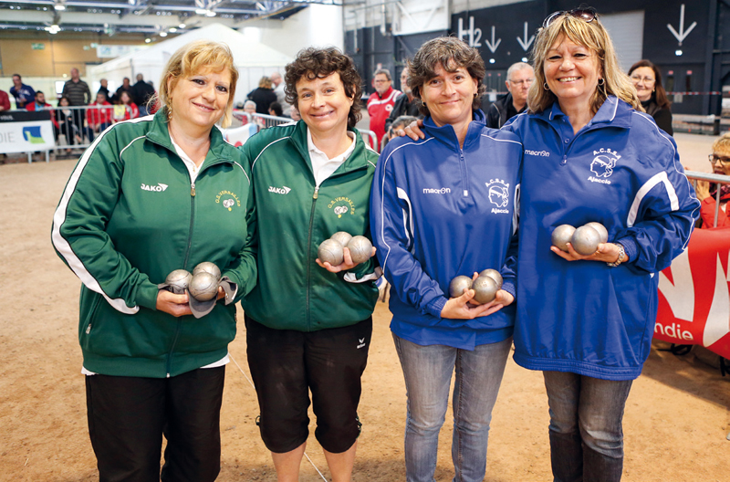 2. Le printemps est la période la plus intense en compétitions, à l’image du Championnat de France de pétanque sourd (Patricia Francot et Marianne Daloz de l’OS Versailles, Monique Teston et Karine Ducro de l’ACSS d’Ajaccio). © F.Pervillé