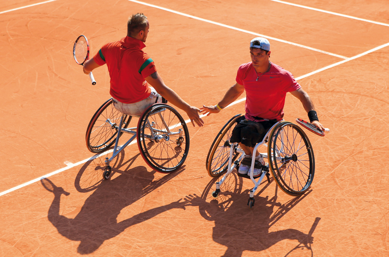 3. Le tournoi de Roland Garros, début juin, aura tenu une nouvelle fois toutes ses promesses. Ici le duo composé du Français Nicolas Peifer et de l’Argentin Gustavo Fernandez, battus en finale du double, par la paire Reid-Kunieda. © G.Picout