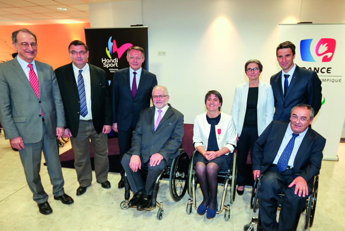 6. Le 24 avril, Emmanuelle Assmann, Secrétaire Générale de la FFH et Présidente du CPSF a reçu la Légion d’Honneur en présence de Sir Philip Craven, président de l’IPC, Thierry Braillard, Secrétaire d’État chargé des Sports, Denis Masseglia, Président du CNOSF, Tony Estanguet, membre du CIO et Gérard Masson, président de la FFH, ainsi que les anciens ministres des Sports, Valérie Fourneyron et Jean-François Lamour. © F.Pervillé