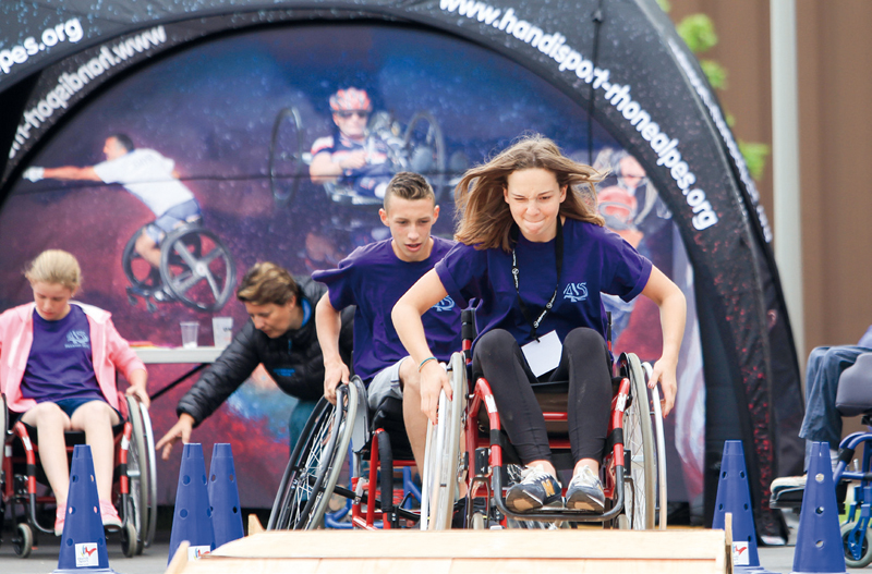 1-2. Créer des rencontres, générer des échanges, sensibiliser les plus jeunes, auront encore une fois cette année, été des priorités au coeur de l’action handisport. 1-2. À l’occasion de la 4e édition du Championnat de France UNSS de Sport Partagé, du 18 au 21 mai, près de 150 jeunes collégiens et lycéens répartis en équipes mixte (handi-valides) ont participé à 4 challenges sportifs. © G.Picout