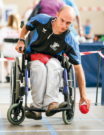 Depuis la création du mouvement handisport à la in des années 40, la volonté de participer au bien-être des personnes handicapées grâce au sport a toujours existé et été transmise. Comment en efet, ne pas utiliser ce levier qu’est le sport pour favoriser l’autonomie, la sociabilisation et le bien être en général ? Mais jusqu’à présent, il s’agissait juste de permettre la pratique d’un sport en toute sécurité en tenant en compte des spéciicités liées au handicap de chacun. Aujourd’hui, une évolution est en cours. « Avec le sportsanté nous souhaitons proposer des activités sportives dans une optique thérapeutique et non plus de loisir ni même de compétition, même si le plaisir de la pratique doit être au rendez-vous », précise Frédéric Rusakiewicz. « Notre commission médico-technique composée de membres de la commission médicale de la FFH, de la DTN et du professeur Daniel Rivière, chef du service d’exploration de la fonction respiratoire et de la médecine du sport au CHU de Toulouse, planche sur quatre grands domaines. La tâche est ardue au regard de la diversité des handicaps et de l’ofre de pratiques proposée par la Fédération. Cependant, cette vaste palette d’activités est une chance pour les personnes handicapées qui pourront plus facilement trouver l’activité qui leur procure du plaisir. »