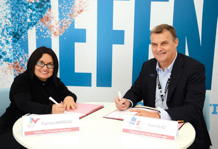 Afin de concrétiser des relations privilégiées de longue date entre la Fédération des Clubs de la Défense (FCD) et la Fédération Française Handisport, les deux organisations ont signé une convention le 9 octobre dernier. Cette dernière a pour objet de favoriser l’extension du Handisport ainsi que les échanges de compétences et sportifs dans le cadre des activités de la FCD sur le territoire métropolitain et dans les départements, régions et collectivités d’outre-mer. Cette convention a été signée par Yves Glaz, président de la FCD et Patricia Marquis membre du Comité directeur de la FFH, chargée de mission auprès des grandes associations en charge du handicap.