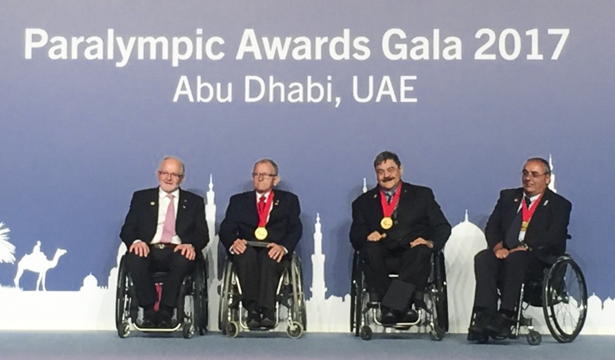 À l’occasion de l’assemblée générale de l’IPC à Abu Dhabi, Gérard Masson, Président de la Fédération Française Handisport de 2007 à avril 2017, et du Comité Paralympique et Sportif Français de 2009 à 2013, a été officiellement décoré par l’IPC. Un vibrant hommage rendu à un homme qui n’a cessé d’oeuvrer pour le développement et la reconnaissance du handisport et du mouvement paralympique en France. L’IPC a tenu à remercier vivement l’engagement de Gérard Masson et à saluer sa remarquable contribution en lui remettant l’Ordre Paralympique, des mains du Président sortant Sir Philip Craven. Très ému, Gérard Masson a pris la parole : Les mots me manquent pour exprimer toute mon émotion suite à cette distinction. Cette récompense que je reçois au même titre que mes prédécesseurs, François Terranova et André Auberger, honore avant tout le mouvement paralympique français et je remercie chaleureusement Emmanuelle Assmann, Présidente du Comité Paralympique et Sportif Français, ainsi que le Président de l’IPC et ami, Sir Phil Craven.