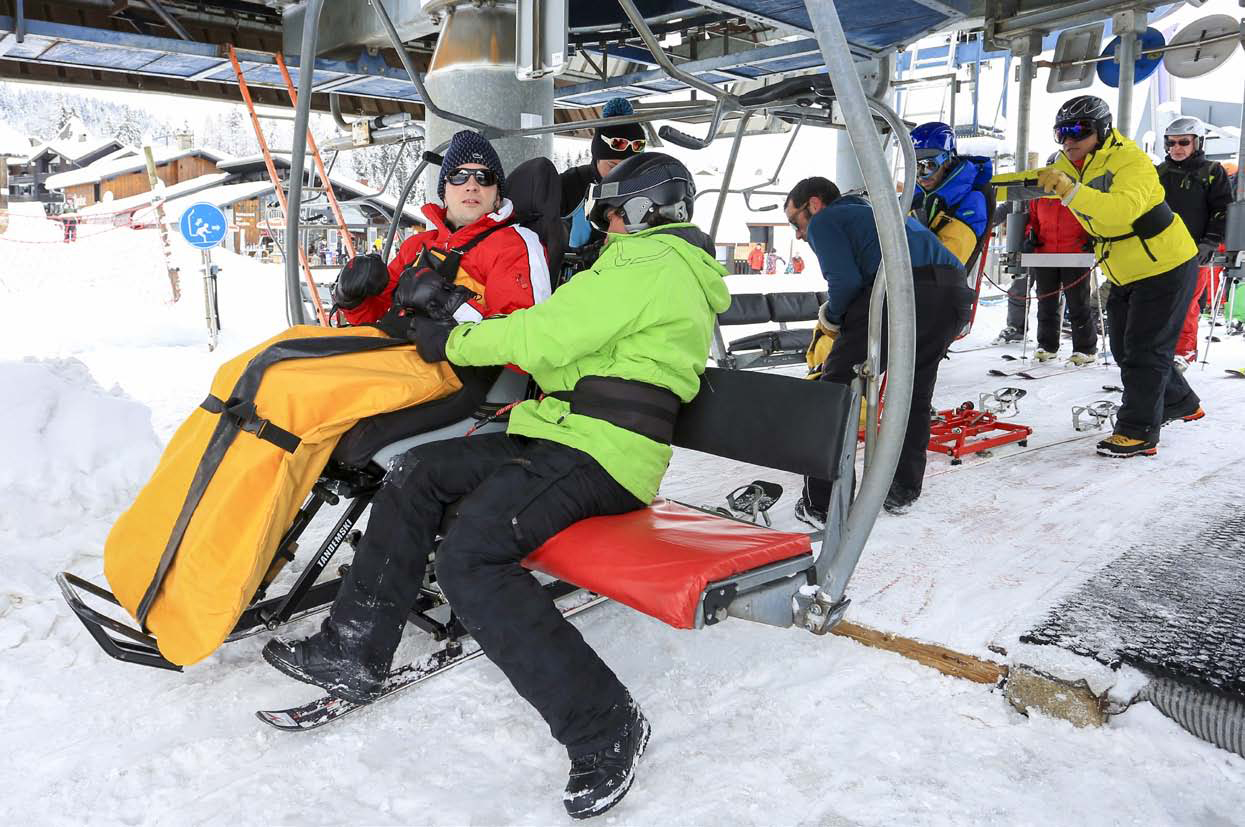 Direction le sommet des pistes pour la découverte des sports de glisse depuis la CCAS, le centre de vacances du comité d’entreprise EDF, partenaire de la Fédération Française Handisport, où tout le monde est logé. Sous l’oeil aguerri des personnels de la station, les jeunes stagiaires grimpent dans le télécabine avec leur fauteuil électrique et se préparent à la descente. « Nous avons été très bien accueillis et, pour des situations qui faisaient un peu “expédition”, nous avons été parfaitement aidés par les professionnels de la station. Des places de dépose-minutes nous ont été attribuées, un chemin a même été tracé pour que les fauteuils électriques puissent se rendre dans le télécabine. Une fois en haut, nous avons déposé les fauteuils dans un espace réservé, puis tout le monde a pris sa place dans les ski-fauteuils. À la fin de la journée c’était l’inverse, le dépôt du matériel sportif en haut et de nouveau la descente en fauteuil électrique dans le télécabine. Nous avons tous ensemble trouvé la bonne organisation » tient à souligner le coordinateur du séjour.
