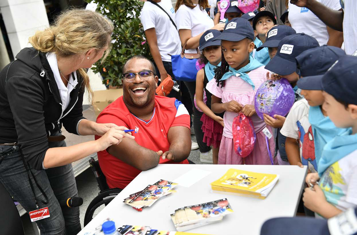 Le HOP a commencé par la traditionnelle cérémonie d’ouverture avec des enfants brandissant fièrement les couleurs des 60 nations présentes, le tout sous le regard de Pierre Deniziot, délégué spécial chargé du handicap et du logement représentant la Région Île-de-France, Guislaine Westelynck, présidente de la FFH (Fédération Française de Handisport) et du HOP, Céline Poulet, secrétaire générale du Comité Interministériel du Handicap et Tony Estanguet, président du comité d’organisation des Jeux Olympiques et Paralympiques de Paris 2024. La Ministre des Sports, Roxana Maracineanu, s’est essayée au fauteuil d’athlétisme dans le Village aux côtés de Charles Rozoy. © F.Pervillé, D.Echelard