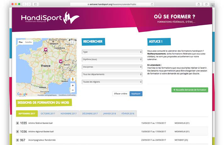 handisport.org/abecedaire-en-ligne - Des formations diversifiées sont également proposées en fonction de thématiques précises (sport santé, activités physique et sportives pour les paralysés cérébraux …)