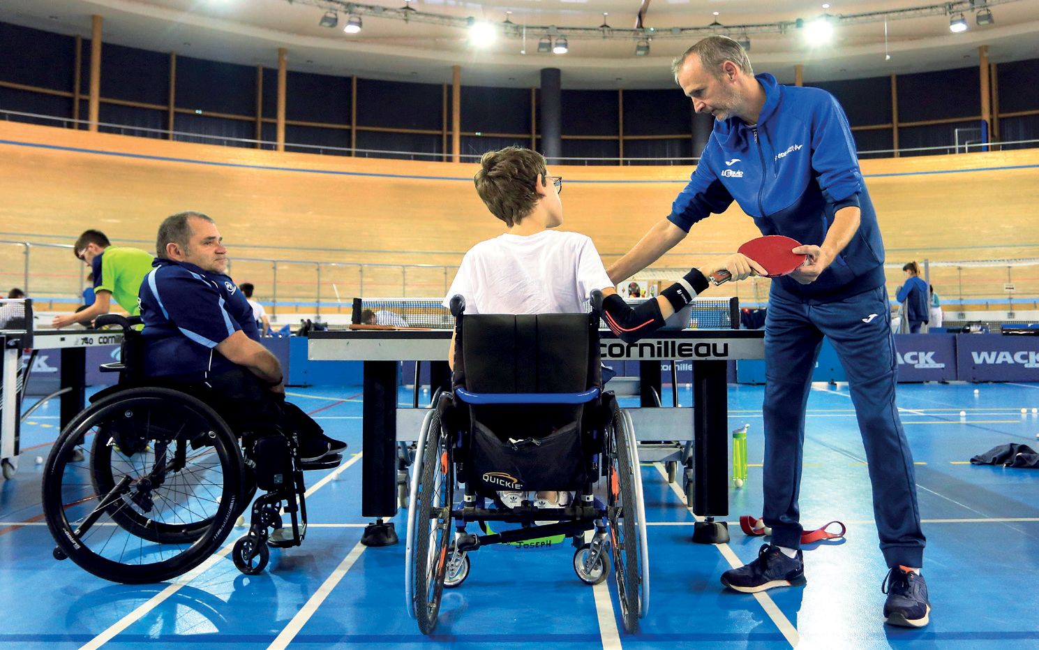 Si les motivations pour s’investir sont propres à chacun, le plaisir est un facteur récurrent. Cendrine Henriot-Wagner, assistante de direction régionale du Groupe Altis et officielle de natation, lutte à sa manière contre le manque de jurys pour offrir un vrai circuit de compétition aux nageurs handisport. Yannick Caroff se réjouit d’avoir trouvé, dans sa qualité de mécanicien des équipes de basket, une manière de « rester jeune et de ne pas être trop isolé ». Benoît Froment, lui, ne cesse d’apprendre sur le plan technico-tactique avec les pongistes en situation de handicap et découvre un métier très différent au Centre Fédéral. « On fait des choses importantes sans se prendre au sérieux », ajoute-t-il. Tous mettent en lumière la convivialité et la richesse d’échanges sans filtre. « J’ai trouvé des gars qui me correspondaient plus », affirme Philippe Navarro. La recherche de performances ne nuit pas à l’état d’esprit. « Malgré les enjeux, l’humanité est toujours là », apprécie Cendrine Henriot-Wagner. L’absence de filtre évite les malentendus et les faux-semblants. Yannick Caroff a traversé deux fois un terrain de basket pour relever un joueur. « Il n’y a jamais eu de troisième fois », rigole-t-il. Les peurs de mal faire sont levées à travers les discussions et les situations de vie commune. Mais il faut parfois dépasser certaines réactions. « Quand on m’a dit : “tu ne sais pas, tu ne peux pas comprendre”, ça m’a fait bizarre », admet le responsable de la section “ping” du Centre Fédéral. « C’est une forme de test à surmonter. »