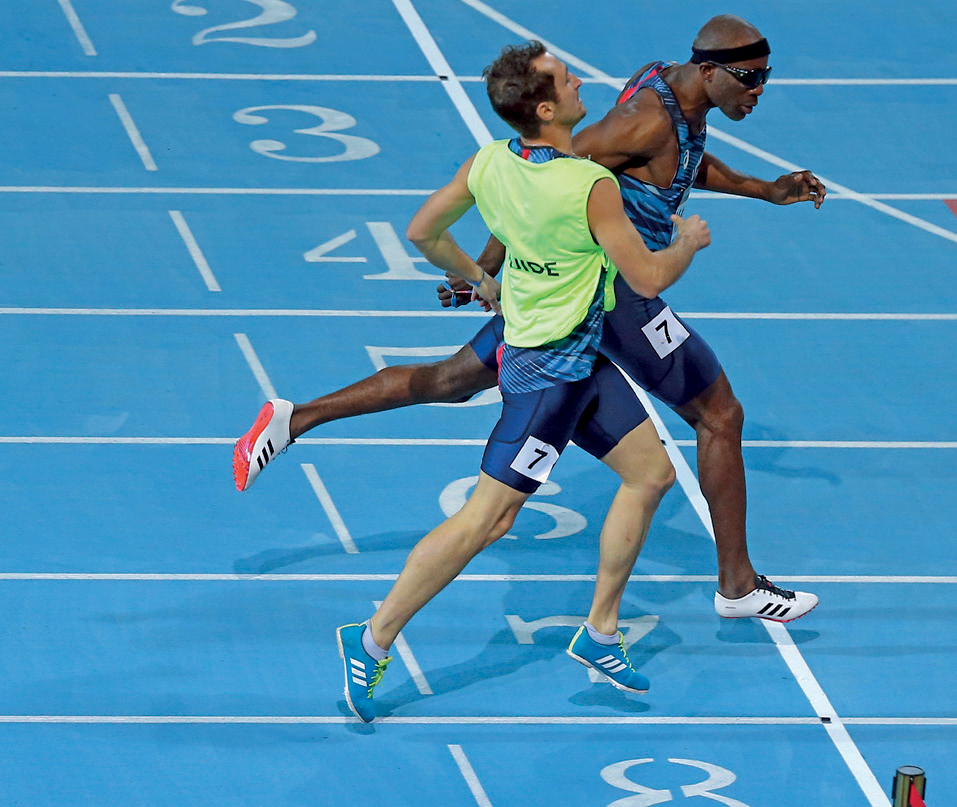 Essayer le mouvement handisport, c’est l’adopter. Emeric Chattey, guide de Trésor Makunda, athlète déficient visuel, pensait mettre un terme à sa carrière valide quand il a été sollicité pour devenir guide. « Je n’avais jamais été confronté au handicap et ne connaissait quasiment pas le handisport. Mais l’idée de disputer des Jeux Paralympiques et la perspective d’aider un athlète déficient visuel à s’épanouir pleinement m’ont séduit. »