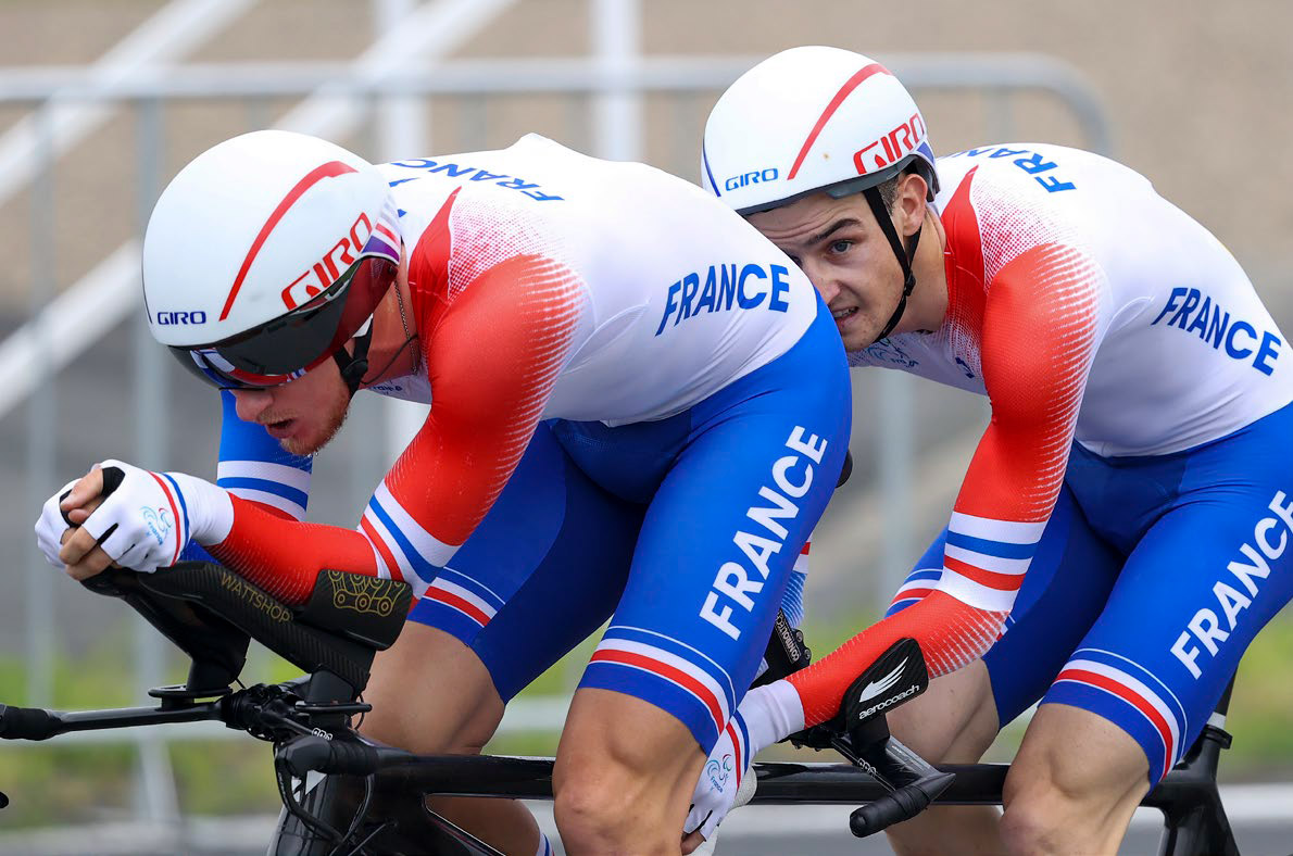 Au pied du podium sur piste, en bronze sur la course en ligne tandem, le duo Alexandre LLOVERAS et son pilote Corentin ERMENAULT (4) terminent les Jeux par une fantastique Marseillaise offert au clan tricolore, lors du contre-la-montre.