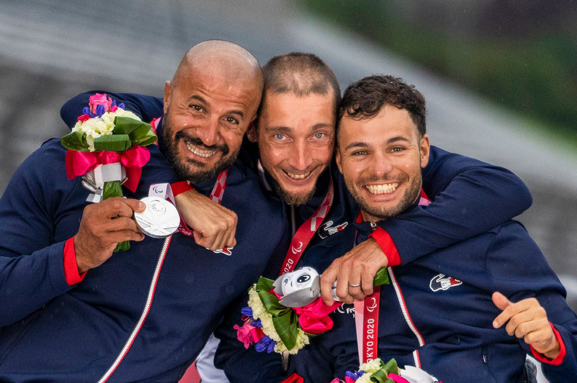Florian JOUANNY (6) réalise le triplé en cyclisme sur route, sacré Champion paralympique lors de la course en ligne H2 (handbike H2), il récolte également le bronze sur le contre-la-montre, avant de remporter la médaille d’argent du relais par équipe H1-5 avec ses coéquipiers, Riadh TARSIM et Loïc VERGNAUD (8). Ce dernier réalise également un fabuleux triplé, grâce à deux médailles d’argent individuelles, en contre-la-montre et sur la course en ligne H5.