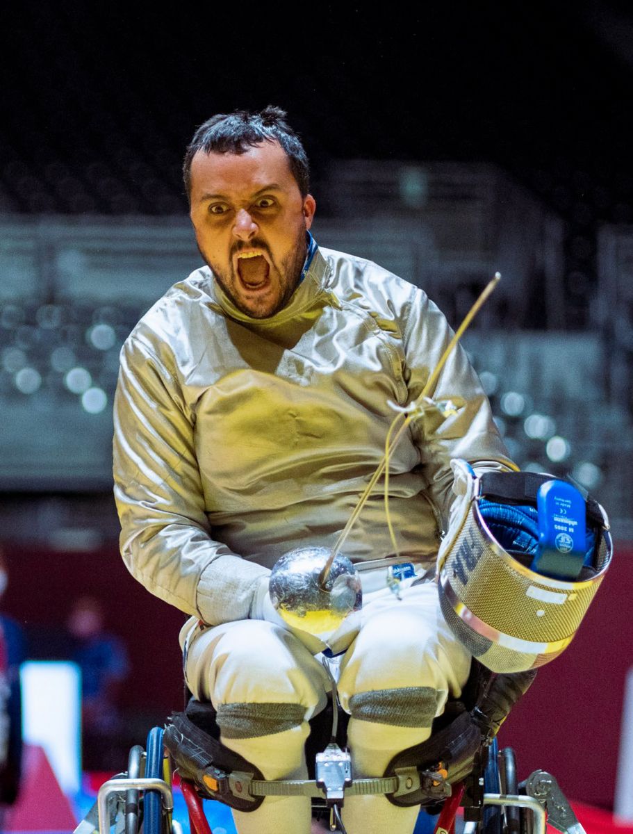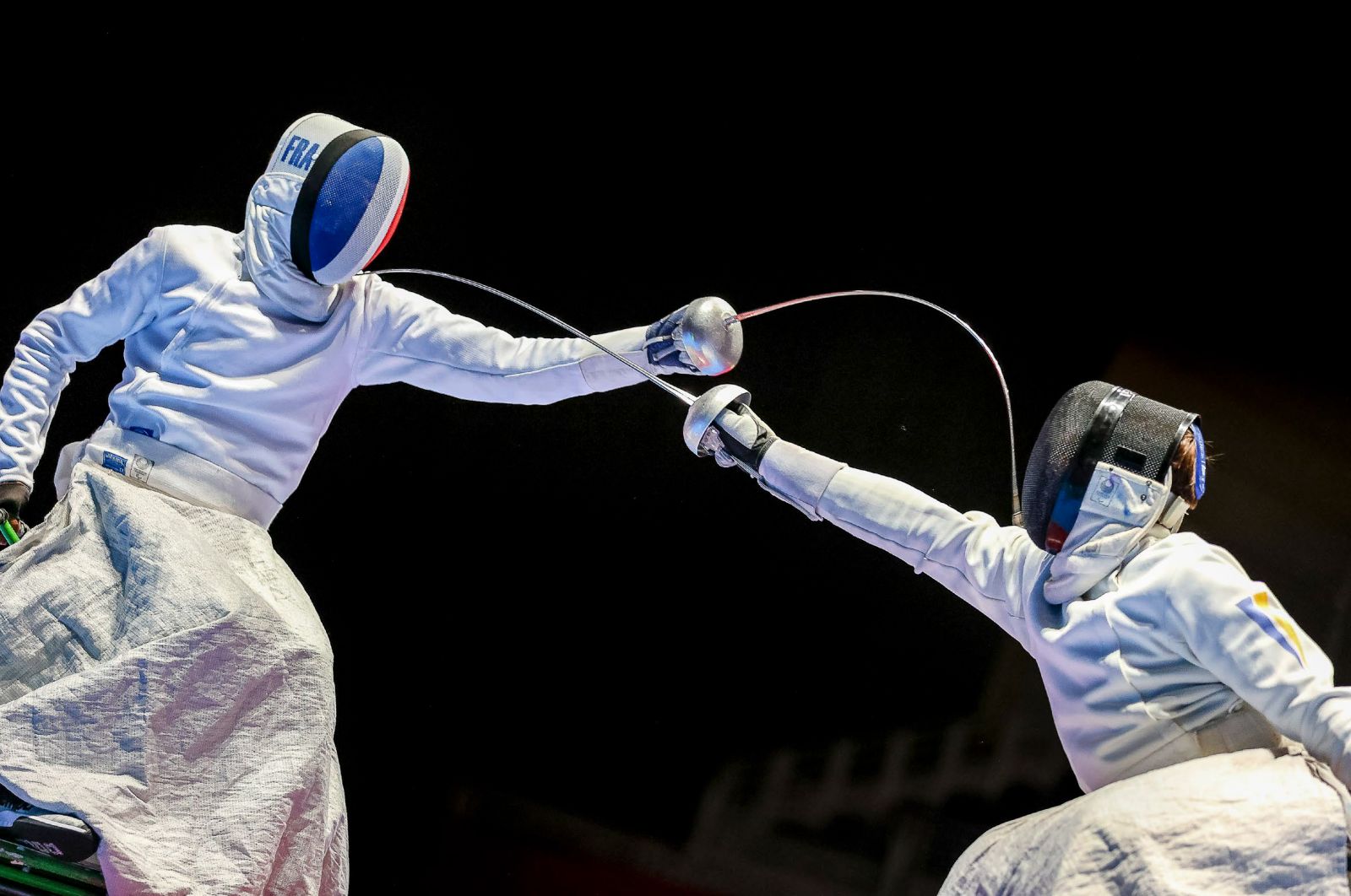 En escrime-fauteuil, lors de la compétition du fleuret par équipe, le trio de fines lames françaises, Damien TOKATLIAN, Maxime VALET (1) et Romain NOBLE s’adjugent le bronze.