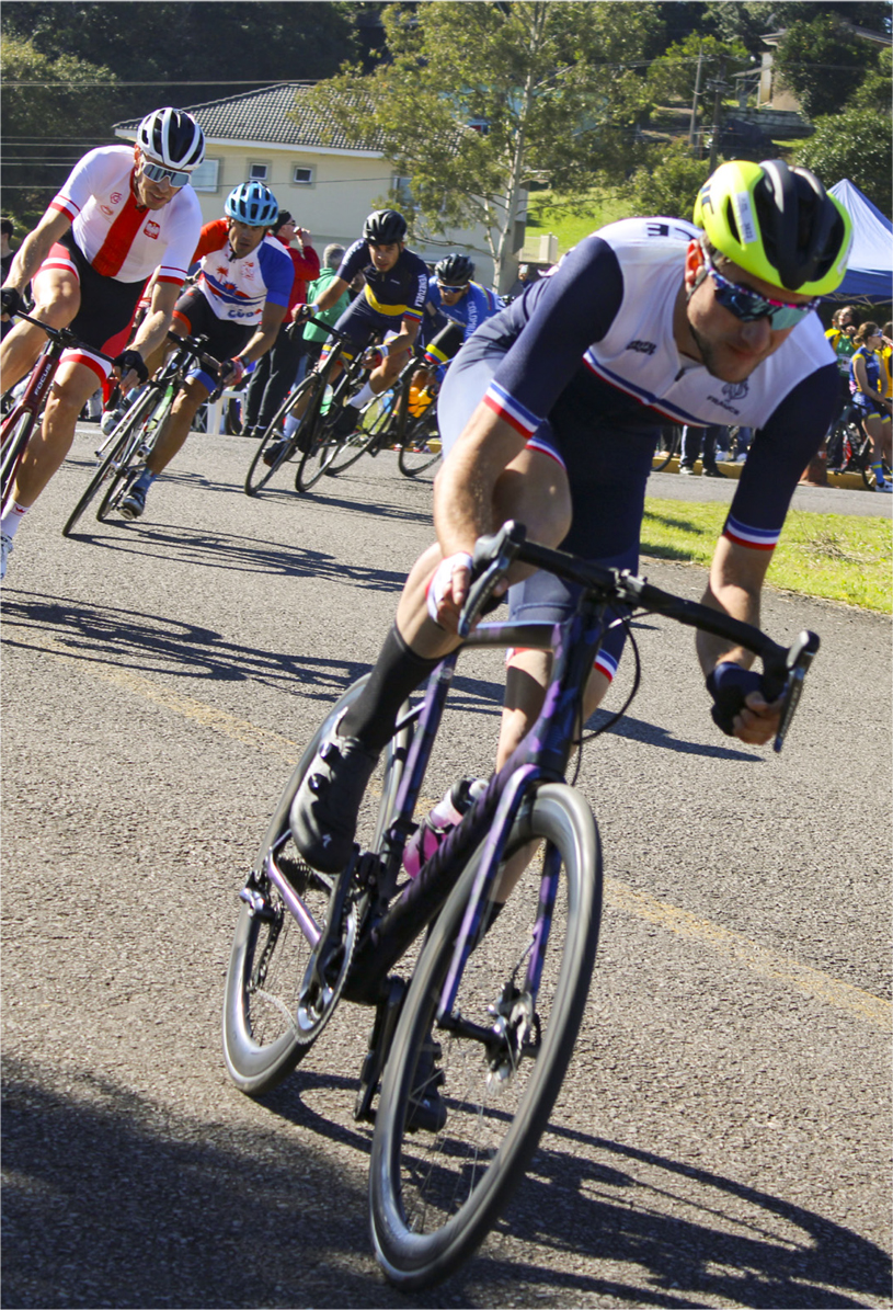 Il y a quatre ans, Steeve TOUBOUL (5) était porte-drapeau de la délégation. Après sa passation avec Vincent NOVELLI (1 - deuxième en partant de la droite), l’Occitan a brillé pour ses derniers jeux. Avec deux médailles d’or et une en argent, il a ouvert la voie du succès pour la délégation, ainsi que ses compères (2). Théo MOREAU (3) s’est, lui aussi, couvert d’or en contre-la-montre. Paul SERVIERES se contente de l’argent et du bronze pour garnir la collection de médailles tricolores.